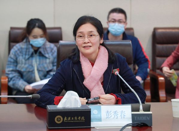 彭秀春董事长对华中科技大学经济学院代表一行表示欢迎及感谢,对双方全面战略合作成果充满期待。她说,华中科技大学经济学院在经济学科建设和经济学人才培养等方面有着丰富经验和强劲实力,双方战全面略合作将为武汉工商学院青年教师和学生提供更多学习的机会,为双方资源共享、科技创新搭建良好的平台,为地方经济发展做出积极贡献。
